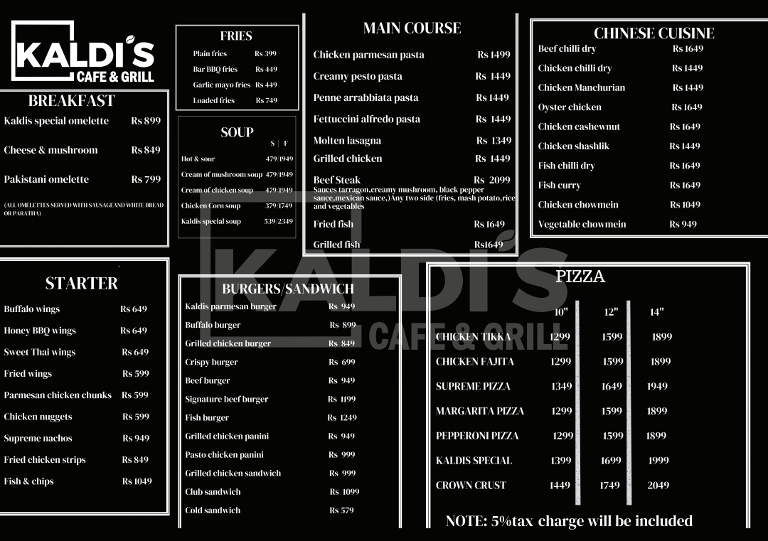 Welcome to Kaldis Cafe & Grill, a delightful culinary haven nestled in the heart of Nathia Gali. This charming café offers a diverse menu that caters to all appetites, featuring everything from continental delights to indulgent desserts. Each dish is artfully presented and crafted with fresh ingredients, ensuring a satisfying experience with every bite.